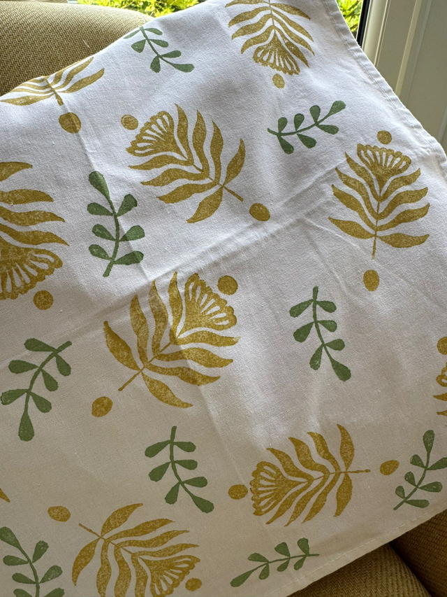 Starting with a coffee or tea you can explore the wide range of beautiful hand carved Indian blocks and see examples of printed pieces. After a demonstration, with plenty of tips and tricks shared, you get to practice before finalising your choice of blocks and colours. By this point, we usually need cake!